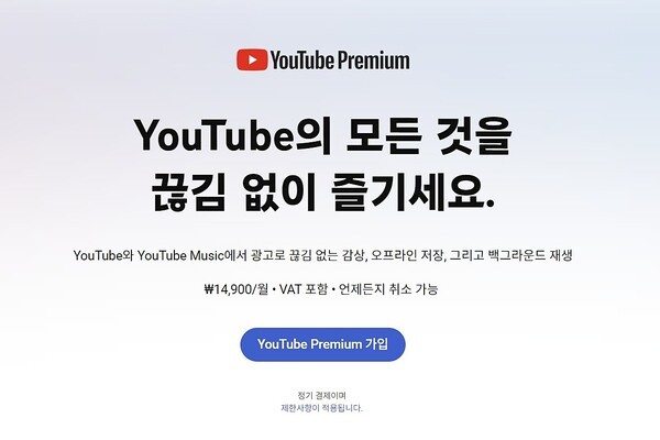 구글이 유튜브 뮤직을 제외한 동영상 전용 구독 서비스인 '유튜브 프리미엄 라이트'를 연내 출시한다.
