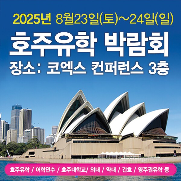 제42회 호주유학박람회가 2025년 8월 23일과 24일 양일간 서울 코엑스 컨퍼런스룸(남) 3층에서 열린다. 관람 시간은 오전 11시부터 오후 5시까지이다.