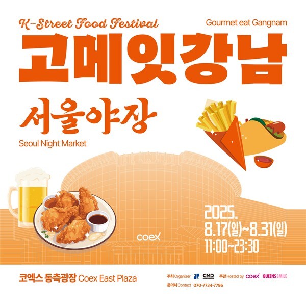 오는 8월 17일부터 31일까지 서울 코엑스 동측광장에서 ‘고메잇강남 서울야장(Gourmet eat Gangnam, Seoul Night Market)’이 개최된다. 이번 행사는 누구나 편하게 즐길 수 있는 야외 포차 감성과 트렌디한 미식문화를 결합한 도심형 F\&B 페스티벌이다.