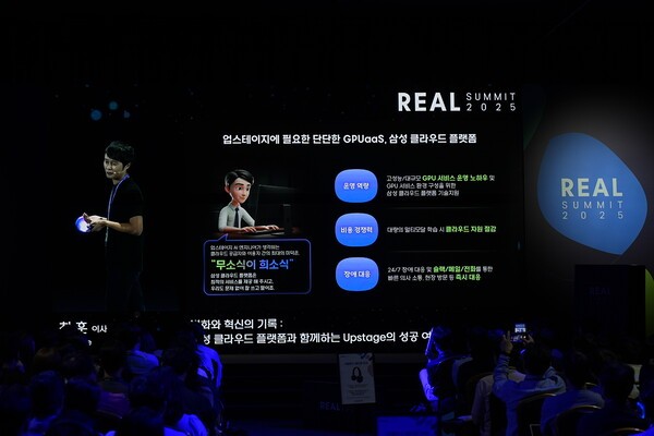 2025년 9월 11일, 서울 코엑스에서 열린 삼성SDS의 ‘REAL Summit 2025’에서 최훈 업스테이지 개발총괄 이사가 ‘업스테이지와 삼성 클라우드 플랫폼(SCP)의 성공 여정’을 주제로 AI에 대한 인사이트를 공유했다.