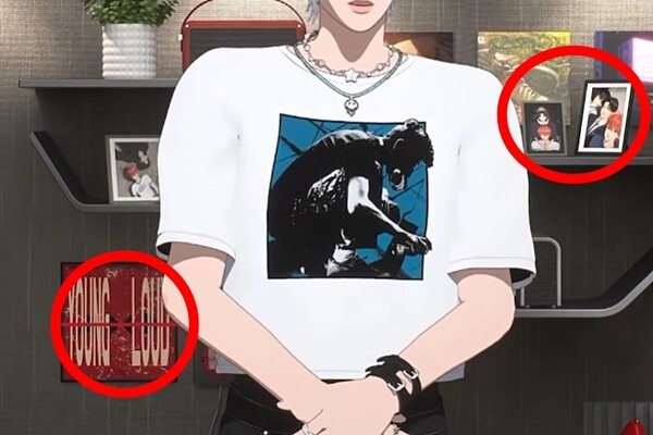 권이랑 뒤로는 지난 4월 발매된 스킨즈의 데뷔곡 '영 앤 라우드'의 로고 액자와 멤버들이 함께 찍은 사진도 보여 눈길을 끌었다.