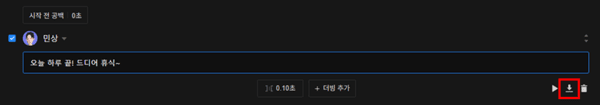완성된 파일은 손쉽게 다운로드할 수 있다. 대본 옆에 있는 다운로드 아이콘을 눌러 저장하면 영상에 바로 활용할 수 있는 음성 파일이 완성된다.