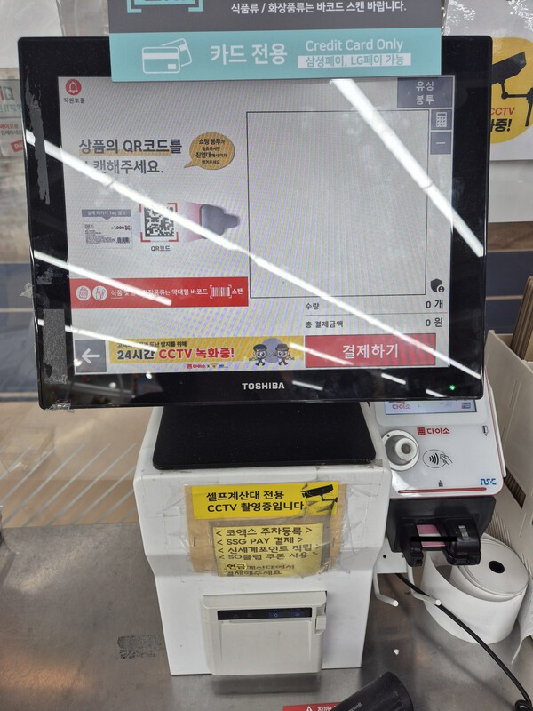 현금 결제는 직원을 통해 계산해야 하기 때문에 키오스크 옆, 직원이 있는 계산대로 간다.