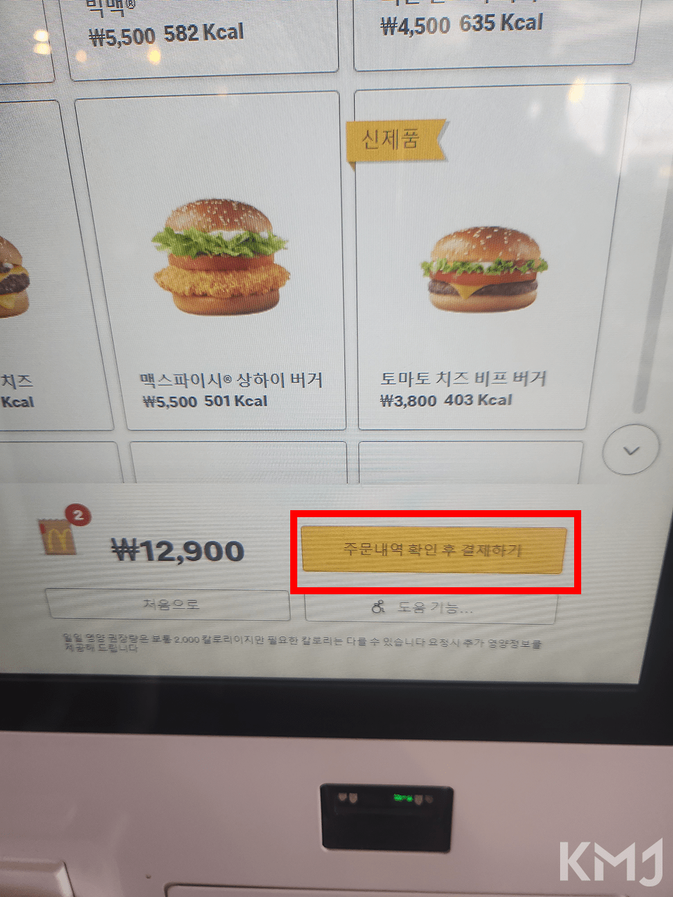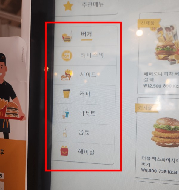 메뉴에서는 맥도날드 키오스크의 장점이 돋보인다. 메뉴당 칼로리를 확인할 수 있다.