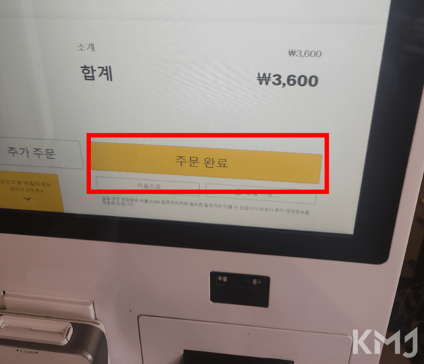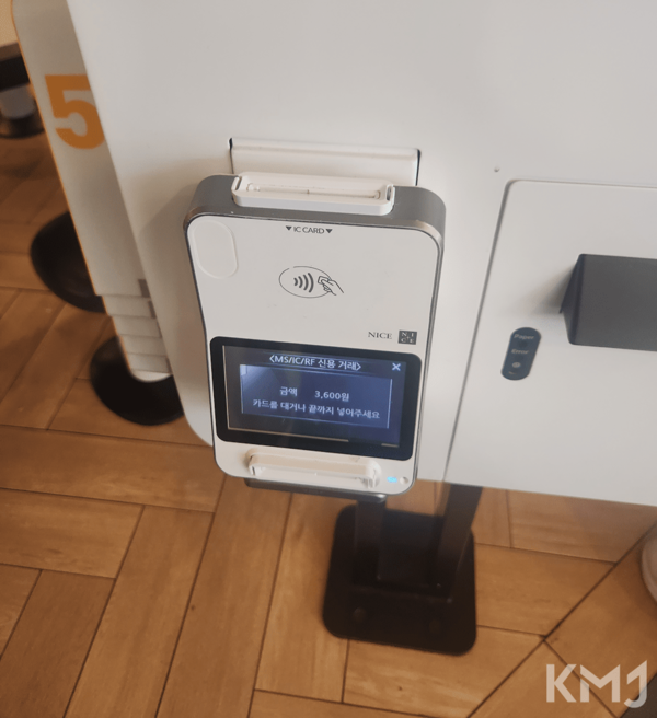 결제를 진행해달라는 음성 안내가 나오면 키오스크 하단의 카드 삽입구에 카드를 넣는다.