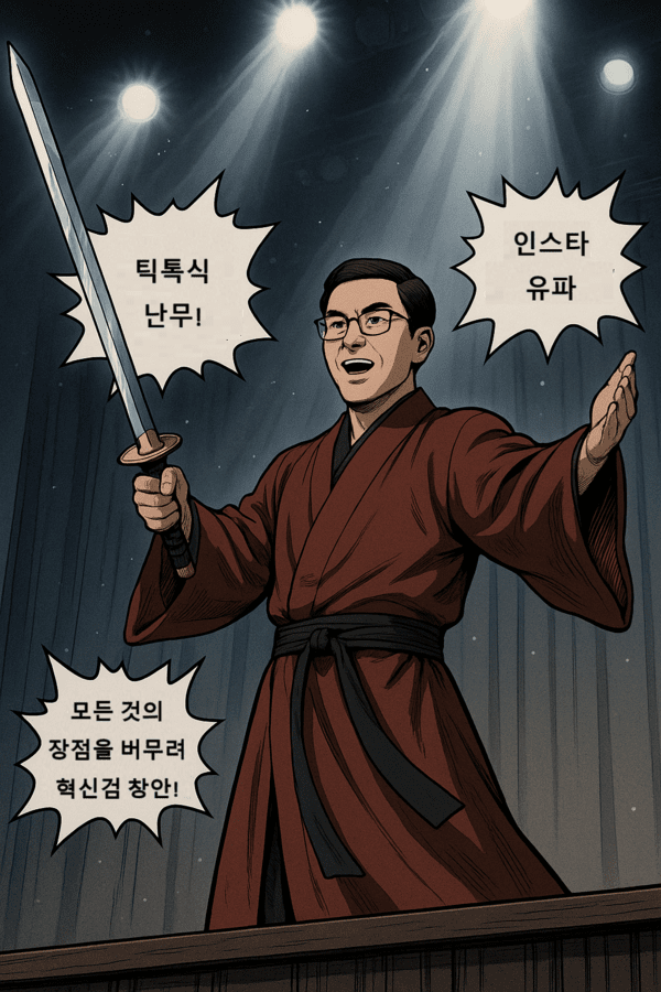 이름하여 ‘혁신검’. SNS식 난무와 숏폼의 기운을 억지로 섞은 기묘한 검술이었다.