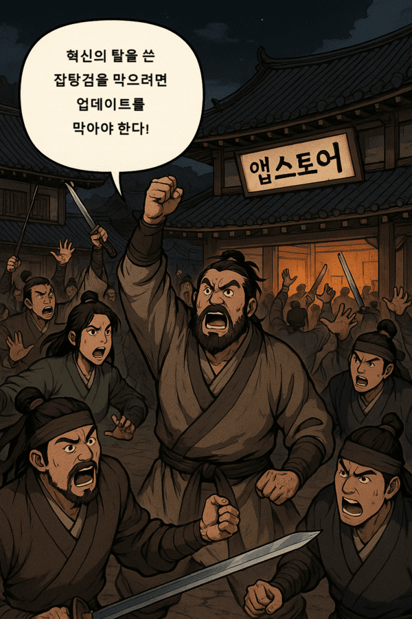 앱스토어 장터에서는 자동 업데이트를 막으려는 백성들의 아우성이 터져 나왔다.