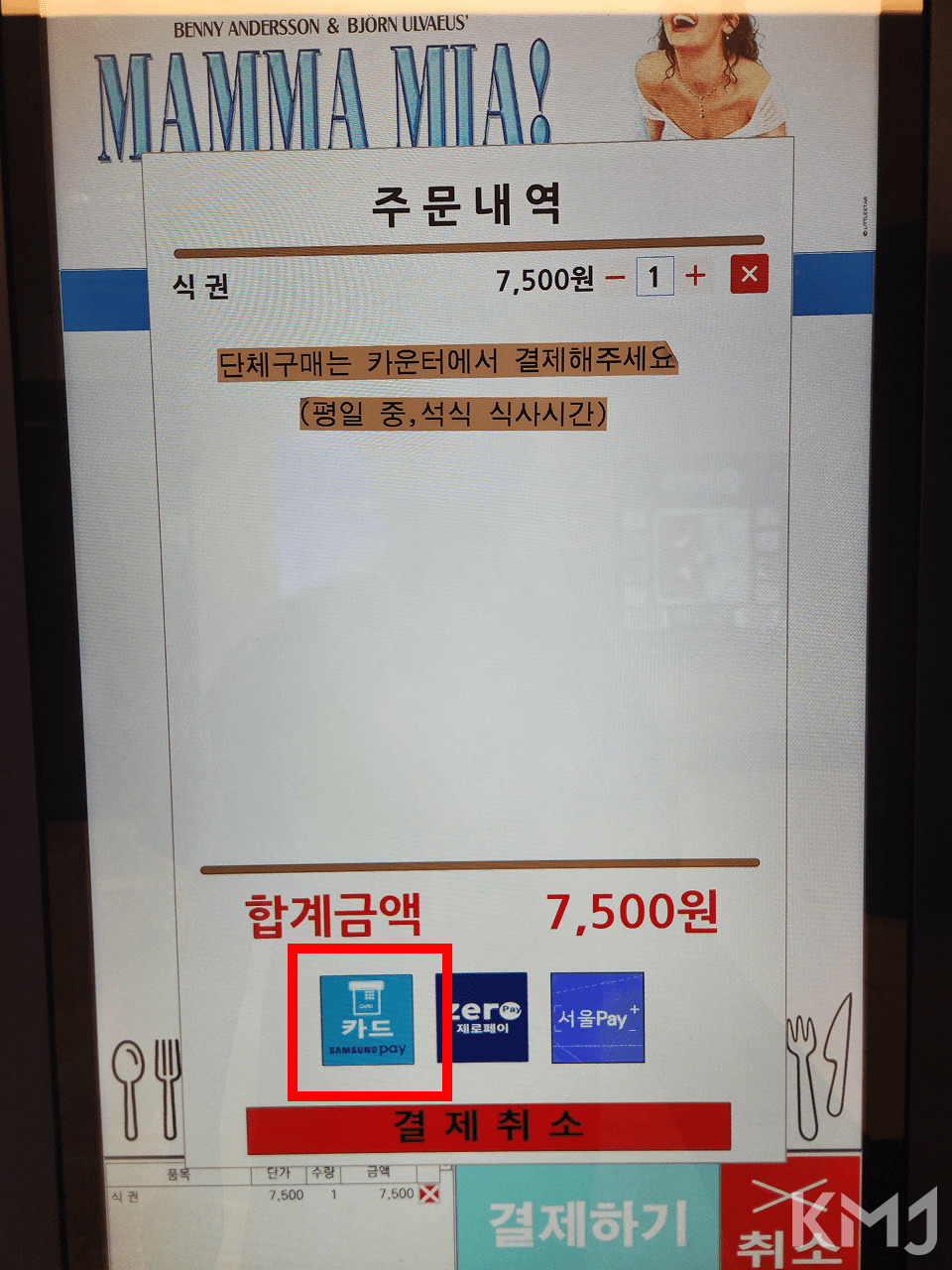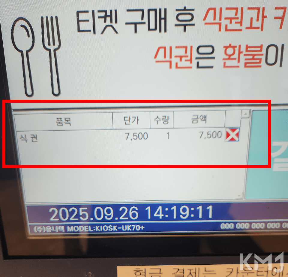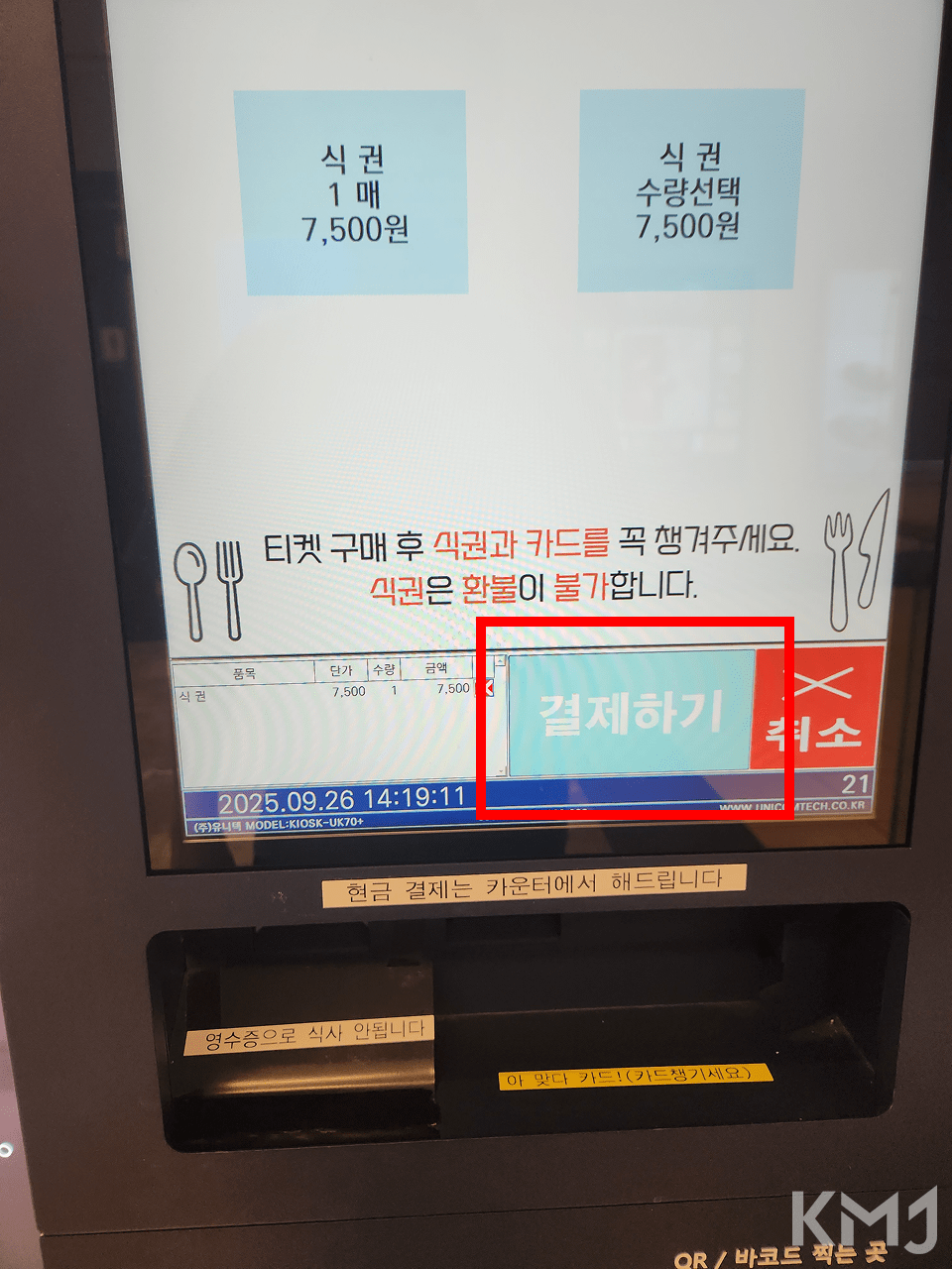 5. 최종 결제 : 카드 삽입 및 식권 수령