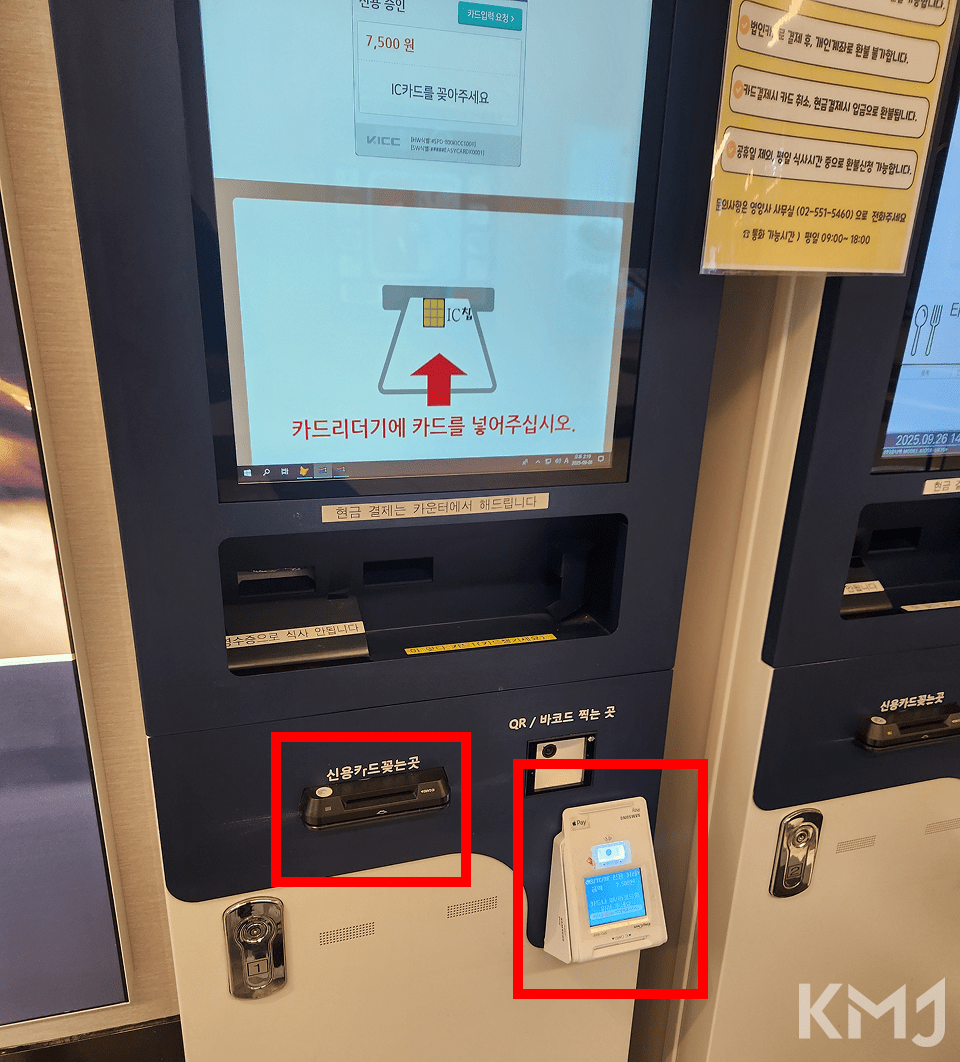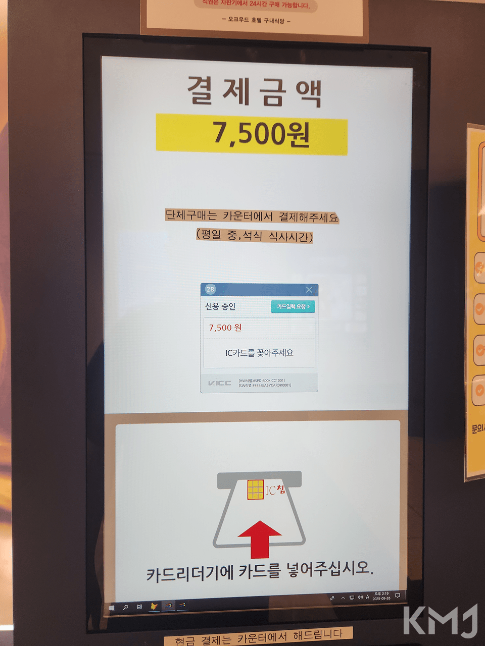 결제를 진행해달라는 음성 안내가 나오면, 키오스크 하단 카드 삽입구에 카드를 넣는다.