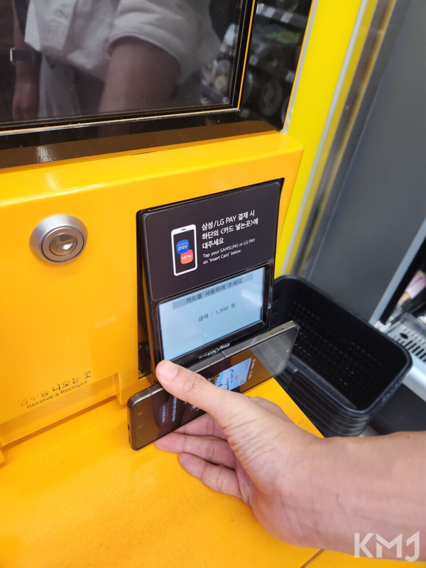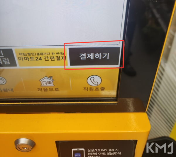 결제를 진행해달라는 음성 안내가 나오면 키오스크 하단의 카드 삽입구에 카드를 댄다.