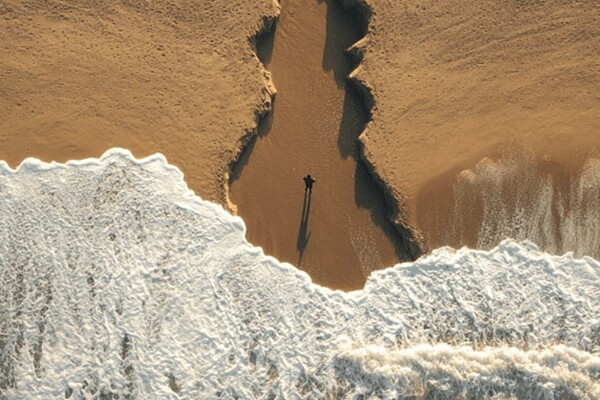 바닷가 모래 위, 인체의 실루엣만 도려낸 공간.