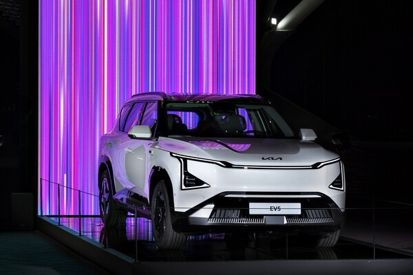 먼저 패밀리 전기 SUV EV5 4대를 LED 미디어 아트와 조명 구조물로 꾸며진 공간 두 곳에 전시해 빛과 어우러지는 EV5의 모습을 관람할 수 있도록 했다.