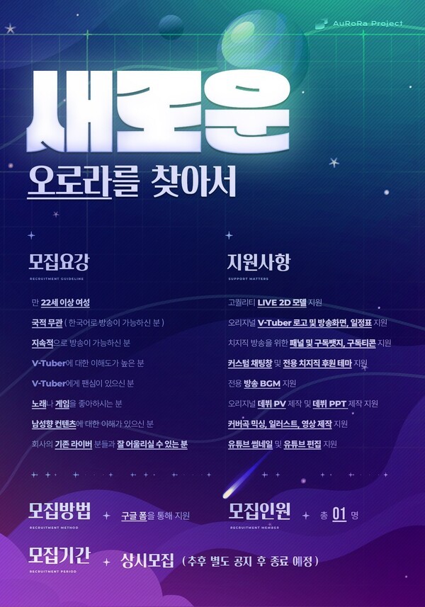SEOUL, South Korea — Korean virtual creator management agency Aurora Project has begun recruiting a new exclusive virtual creator who will make their debut under the agency.