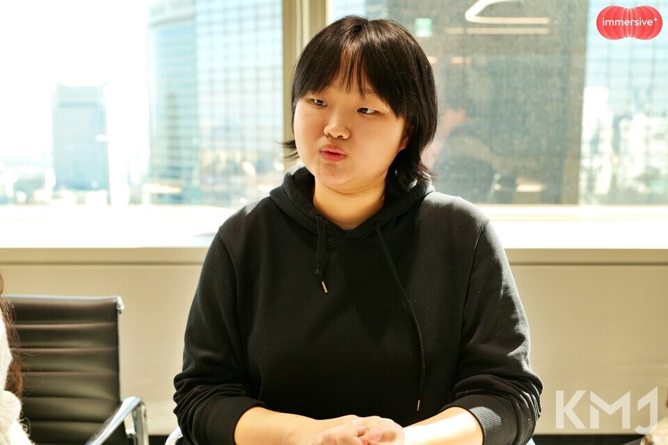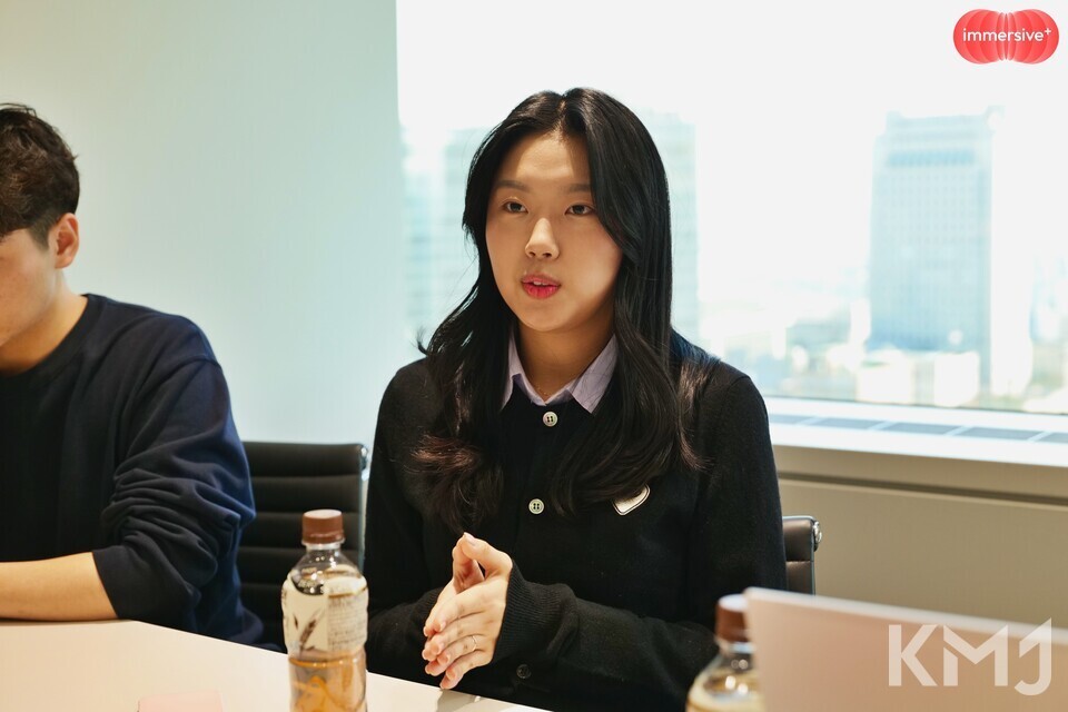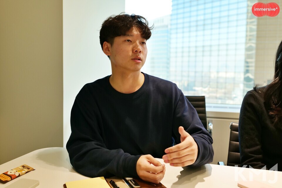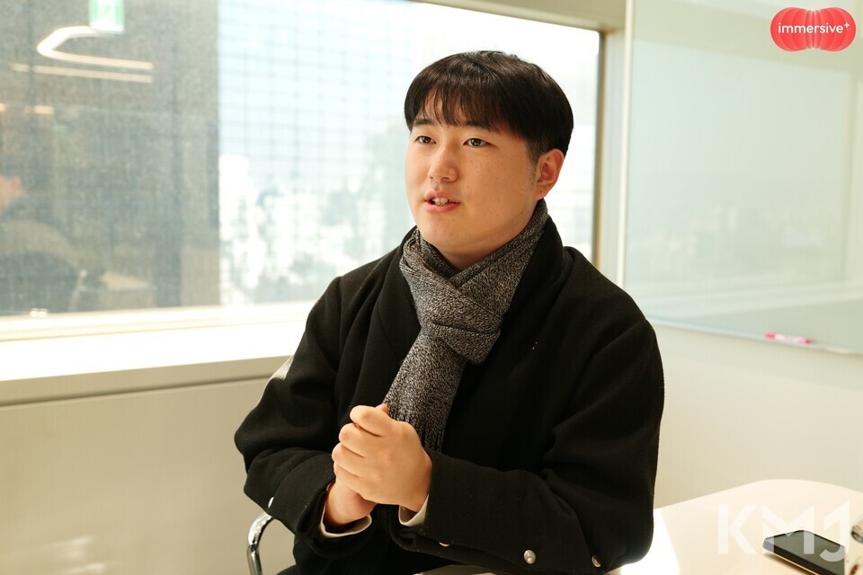▲개발팀장을 맡고 있는 이준희입니다. 저희 전시 콘텐츠가 기본적으로 XR을 다루고 있고 그중에서도 VR 기기로 즐길 수 있는 콘텐츠를 선보이다 보니 이를 위한 작업을 담당하고 있습니다. VR 콘텐츠를 활용하는 목적은 관람객이 전시를 보면서 자연스럽게 몰입할 수 있는 환경을 전해드리는 거예요. 그리고 콘텐츠에 접속할 수 있는 웹 개발 및 서버 구축 등의 작업을 지휘하고 있습니다.
