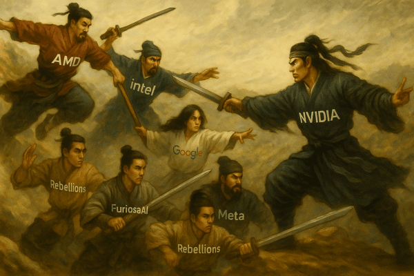 엔비디아는 여전히 AI 칩 시장의 ‘기축 통화’로 군림하고 있다. 하지만 AMD, 인텔, 클라우드 3대 기업, 그리고 한국의 신생 반도체 스타트업들이 서로 다른 방향에서 균열을 만들어가고 있다.
