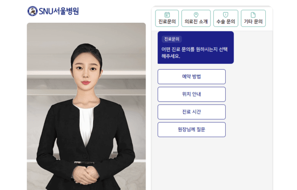 인공지능(AI)를 이용한 의료상담 서비스도 SNU서울병원은 실시했다. 주요 부위별 수술 방법과 시간, 여기에 입원시간까지 기본적 사항을 AI 상담으로 빠르게 확인할 수 있다.