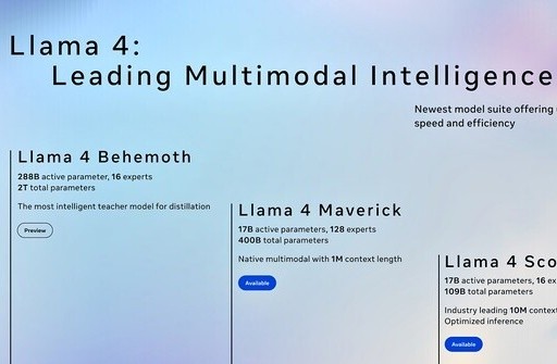 이날 메타는 라마4 3가지 제품군 중 스카우트와 매버릭, 2가지를 먼저 출시했다. 스카우트는 긴 텍스트 처리와 효율성에 중점을 두었고 매버릭은 더 넓은 범위의 작업에서 높은 성능을 제공한다. 두 제품은 오픈소스로 제공되며 메타가 운영하는 왓츠앱, 메신저, 인스타그램 다이렉트, 메타 AI 웹사이트 등에서 이용해 볼 수 있다.